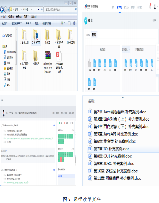 教学资料是保证学生开展学习的必备条件,良好的线上教学效果离不开丰富、全面的教学资料。由于疫情突如其来,部分学生手中没有教材,为了不影响学习效果,教师为学生准备了电子版教材。同时,教师还精心制作了课程PPT、课程教案、学习任务、练习题、补充案例等,为学生的充分学习提供保障(见图7)。