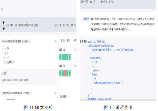 在线学习是整个线上教学模式的中心,是学生获得新知的重要途径。传智播客高校教辅平台给学生提供了优质的课程视频学习资源(见图10),帮助学生构建起完整的知识体系。同时每节课会利用传智播客高校教辅平台布置随堂测验和课后作业,一方面可以检测学生对当前知识点的掌握程度,另一方面还可对学生起到督促作用。其中随堂测验主要以选择题和判断题为主,要求课堂上限时提交。课后作业布置分两种形式:基础类作业与编程类作业。基础类作业,难度不大,多为基础知识范畴,以选择、判断、填空题型出现,要求每位同学都独立完成,培养独立思考钻研精神;编程类作业,有一定的难度,多为编程题,安排小组讨论,鼓励一题多解,培养多角度全方位思考和团队合作精神(见图11、图12)。