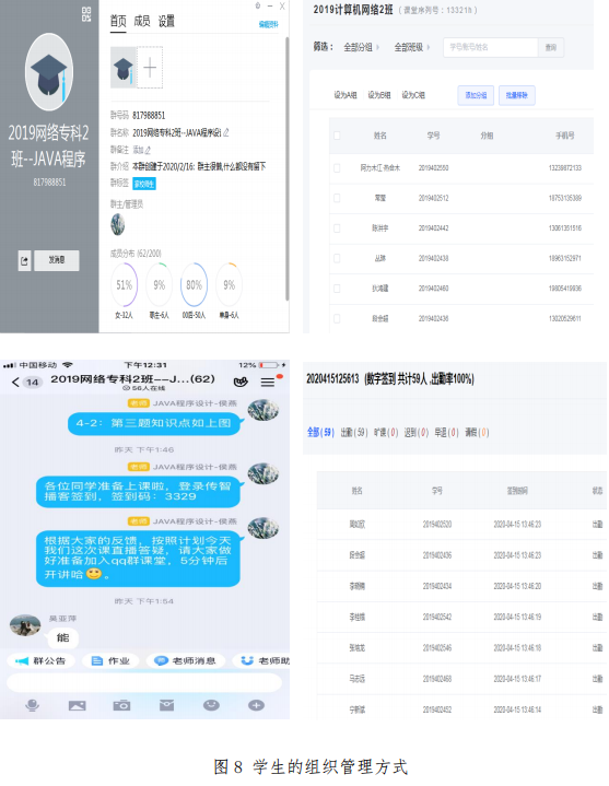 班级QQ群是师生沟通交流的主要工具,课程的共享文件、通知、课前组织都使用QQ群完成。另外,在传智播客高校教辅平台上创建了属于课程的班级并成功地将全班学生信息正确导入。