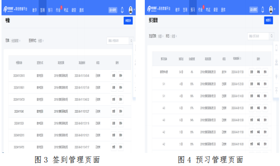 通过发布课程学习页(见图 2),老师可以发布签到、发布预习任务,发布作业,发布教学内容,发布考试、管理课堂班级等。在此平台完成签到(见图 3),学习、作业,考试的布置(见图 4)。基于大数据的学习分析技术能及时促进教师完善和改进教学内容,帮助学生自我调整学习计划和学习方法。