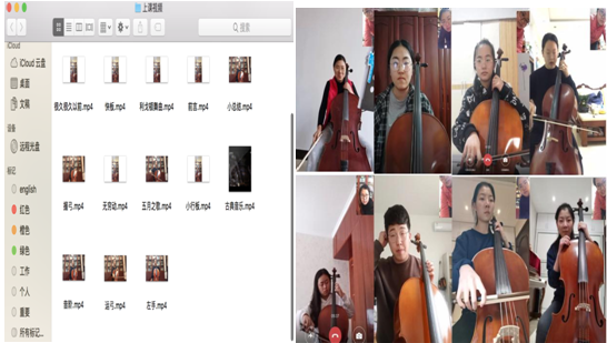 根据前九周线上的课程实施,个人感觉还是很有成效的。两个平台的衔接,使我的课程更加丰满充实。通过学生们自己录的视频,可以很直观的感受到学生们的进步,当学生们回放自己的视频时都很有成就感,并对大提琴更加有兴趣。我在其过程中也经常会收获惊喜,很多学生会在一周内有一个很大进步,质的飞跃。也促使我对讲课语言的精准、有效表达有了深刻的思考和更高的自我要求。如何短时、高效培养不同程度学习大提琴的学生是我值得探究,深思的问题。我会继续努力去探究更多丰富有效的方式,方法,从而使我的大提琴课程变得更加丰盈。拉近我们跟这门“高冷”乐器的距离。停课不停学,我们一直在云端。