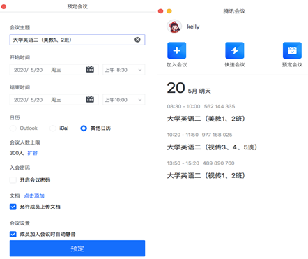 上课前一天预约腾讯会议,上传课程资源。为了节约上课时间,提前编辑上 课所需发布的各项内容,进行课程流程的排演。