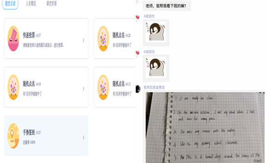 课上以各种方式,如头脑风暴,随机连线学生,互动投票等与学生进行互动, 及时掌握学生的学习动态。