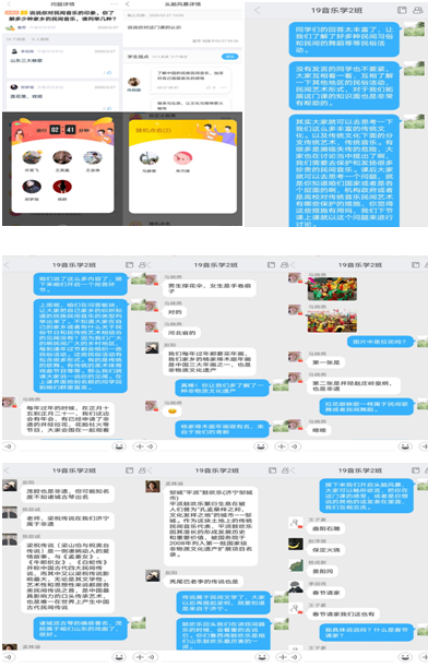 本课程集合智慧树平台的电脑以及手机客户端,同时利用QQ群进行辅助教学,即时与学生进行线上沟通。为了能使学生对《民族民间音乐》这门课程有更直观的了解,并在后续的学习中保持新鲜感与较高的参与度,在课程的导入上,选取学生感兴趣的相关话题进行积极引导: