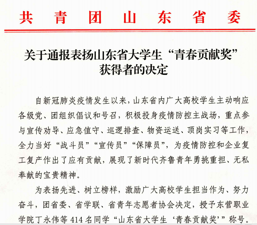 青年榜样!金年会官网7名同学获山东省大学生“青春贡献奖”殊荣