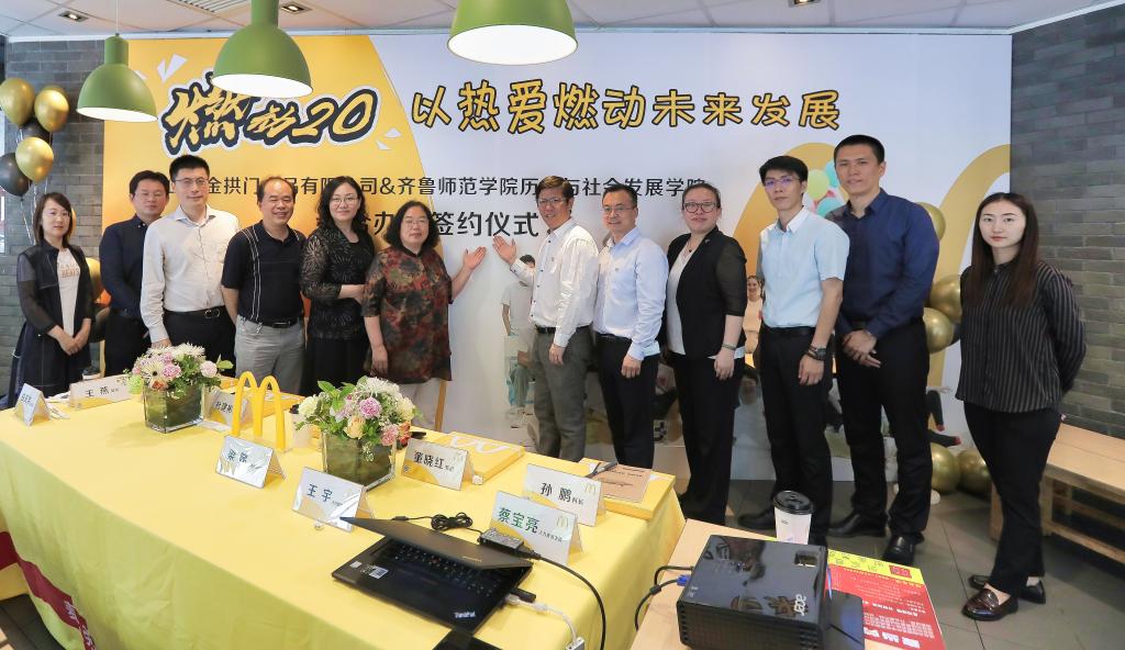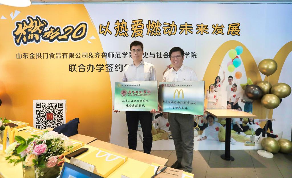 5月21日,金年会官网教务处副处长杜建彬、实践教学科科长孙鹏、历史与社会发展学院院长李红艳、党总支书记张延昌、旅游管理教研室主任董晓红、专业教师王燕一行受山东金拱门食品有限公司(麦当劳)邀请,参加麦当劳中国520全国招聘周企业开放日活动,并与该公司进行连锁经营人才培养基地授牌仪式。此次开放日以“燃动20 ·我们就相信年轻人”为主题,创建校企合作的平台和渠道。