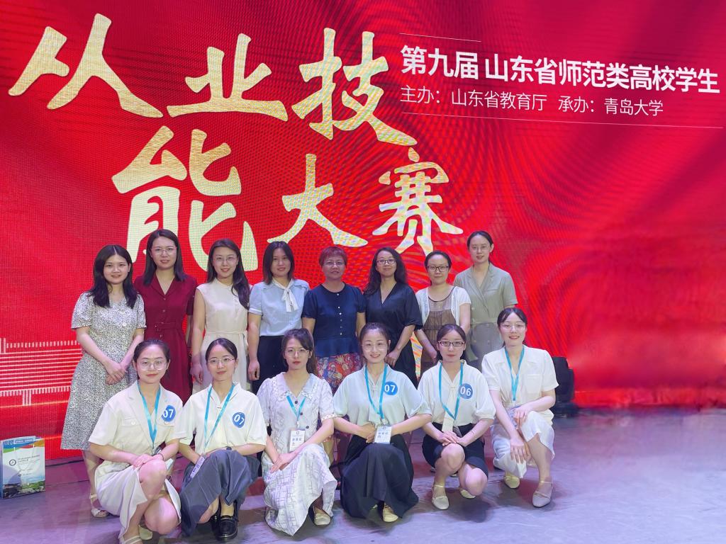 7月21至23日,第九届山东省师范类高校学生从业技能大赛省级决赛在青岛大学举办。本次比赛中,英语学科设有小学、初中、高中三个学段,共设24个一等奖,来自全省47所高校的师范类学生参加了英语学科决赛。金年会官网共8名学生参加英语学科决赛,4名学生获得一等奖,2名学生获得二等奖,是英语学科中获一等奖最多的三所学校之一。其中付珺琪获得高中英语推荐组一等奖第一名,外国语学院教师王瑶、张晨阳、汪洁、叶明晶获得“优秀辅导教师”荣誉称号。