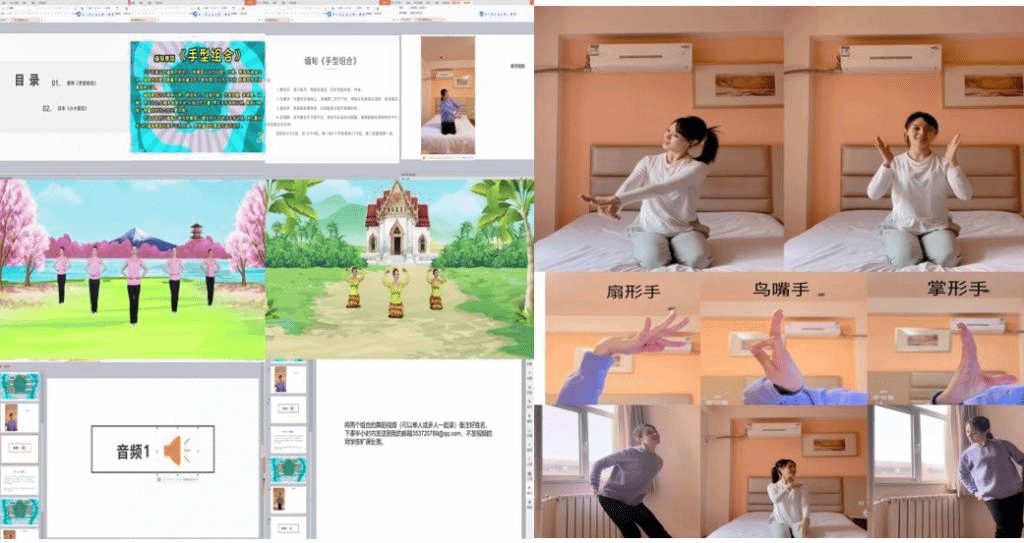 《舞蹈2》课程采用腾讯会议APP直播、微信班级群发送课程资料的形式进行线上混合式教学,相关课程资源包括:课程PPT、教学视频、音频资料等。