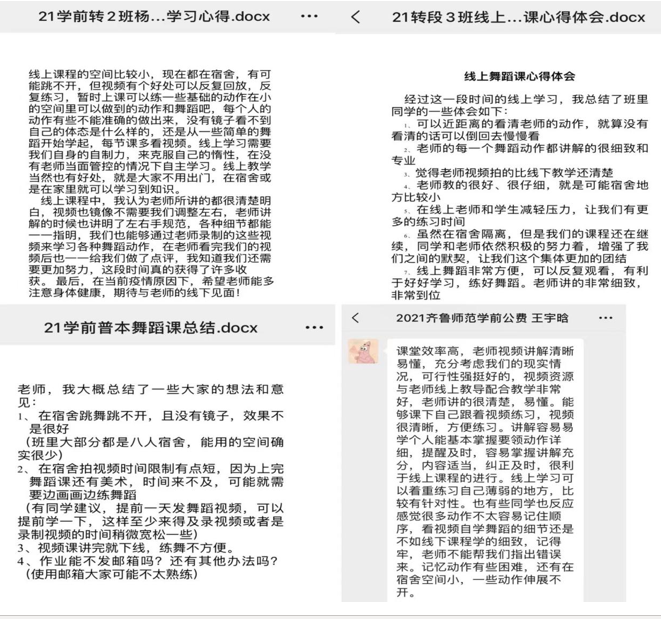 疫情期间,停课不停学,舞蹈作为一种艺术形式,传达着艺术的美感,学生通过教师精心设计的教学资料,激发自身的内驱力,提升学习舞蹈的主动性,在感受艺术的过程中,塑造完美的人格,减少疫情带给学生心理方面的影响,促进自身的全方位发展。教师也能教学中,充分了解到每一位学生的学习情况,为线下教学做好铺垫。