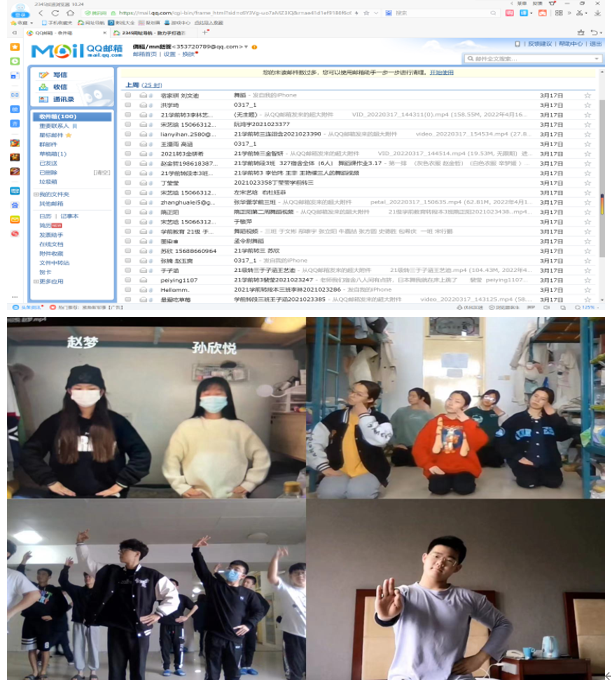 各班根据自身情况分小组录制本节课所学的舞蹈组合,下课后15分钟内,发送到教师邮箱。