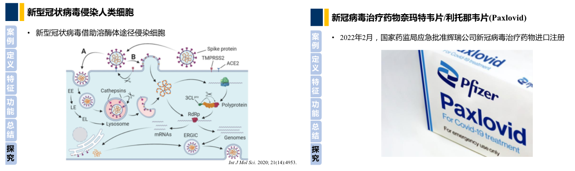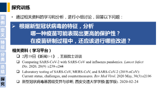 通过学生自主学习情况反馈发现,在“新型冠状病毒为什么能够持续传播”的问题上,部分学生特别关注了新冠病毒侵染人类细胞的过程。该部分内容是原有教学设计中未涉及的内容;根据学生的兴趣和关注,教师在线上讨论中结合最新科研成果拓展相应教学内容,并介绍基于科研成果所研发的新冠新药,提升学生对专业重要性的认识和投身科研的兴趣。