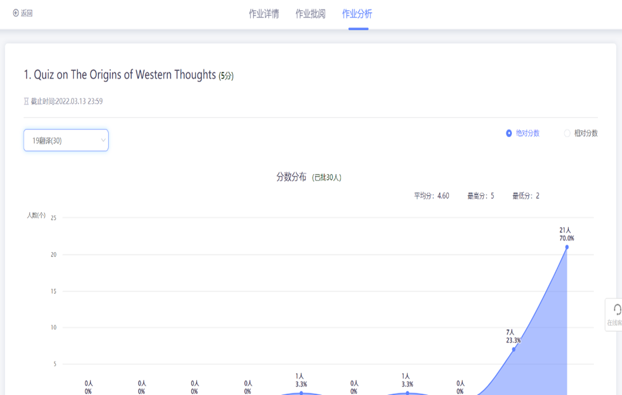 以第一章为例,下图为2019级翻译本科班的测试情况分析:
