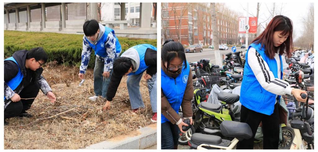 在学院团总支老师的带领下,“星光力行”青年志愿者团队第一小分队赴章丘区双山街道文化路社区开展社区楼道内电动车排查和清理工作,帮助居民消除消防安全隐患,同时配合社区为居民开展消防安全普及工作。第二小分队积极配合学校相关部门进行了校园电动车排查、清理工作以及校园、实验室卫生清理等工作,用自己的双手带走灰尘与垃圾,将一辆辆杂乱的自行车码放整齐,为春日的校园增加一份干净与整洁。志愿者们踊跃投身到服务社区实践与服务校园师生中,讲文明有礼貌,身体力行传承和弘扬雷锋精神,弘扬君子之风,展现了师院学子昂扬向上的精神风貌。