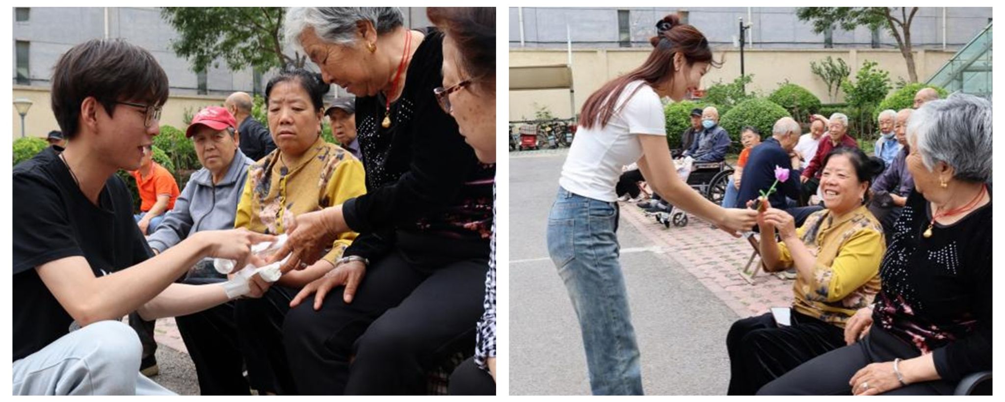 在百脉泉社区F区广场学生党员志愿者将奉献精神投入实际行动,面向社区居民开展了一场精彩的主题宣讲与知识科普。同学们用朴实的语言、生动的事例及形象的演示,深入浅出地为居民们讲解了电动车的电池构造与充电安全等知识。“红色和绿色的的绿豆汤哪种营养价值更高”“如何去除水果上的蜡质、商标残留”“怎样避免切洋葱时眼睛流泪”等生活中的常见问题都在党员志愿者们讲解的化学知识中找到了原因和解决办法。志愿者王琪在介绍完小苏打的生活妙用后,为现场居民演示了此次玫瑰变色的实验,白玫瑰遇到几滴溶液后绽放出了绚丽的新色彩,令现场观众惊喜不已。