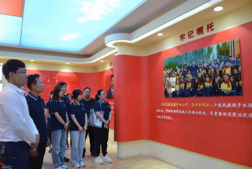 随后,实习支教团临时党支部来到阿亚格曼干村红色爱国主义感恩教育基地,先后参观了“足迹与关怀”“入户拉家常”“牢记嘱托”“砥砺前行”等展厅,感受阿亚格曼干村近年来的发展与变化,深刻感悟习近平总书记对新疆各族群众的关爱之情。