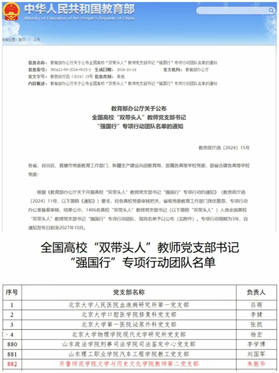 文学与历史文化学院党支部入选教育部“强国行”专项行动团队