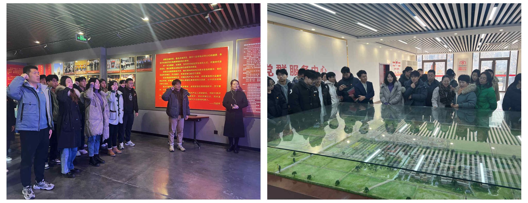 在山东省委党校“四五党性教育基地”参观学习时,通过讲解员的讲解,全体师生了解了牺牲烈士的光荣事迹,瞻仰了大量珍贵的史料图片和烈士遗物,重温了山东早期党组织在艰难困苦中发展壮大的光辉历程,以及“四五”烈士们波澜壮阔、英勇无畏的革命生涯。活动最后,全体师生共同重温入党誓词,铿锵有力的誓言表达了他们对党的忠诚和对共产主义事业的坚定信念,彰显了共产党人矢志不渝的奋斗精神和为人民服务的初心。