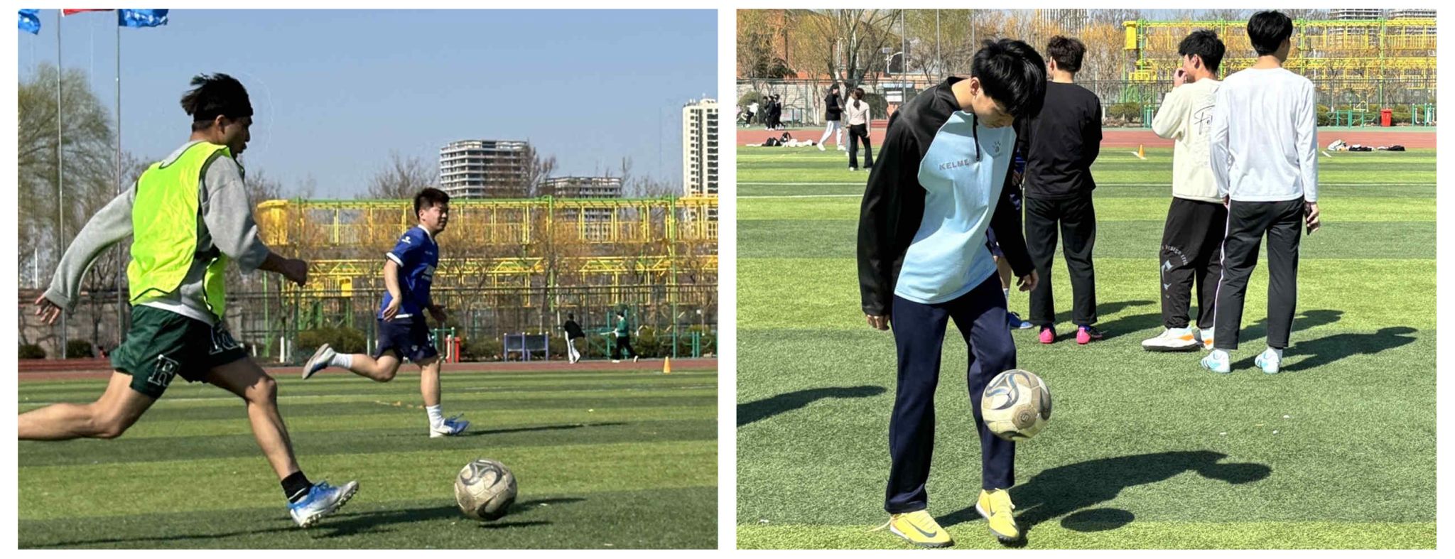 女子射门环节,女同学们展现出别样的飒爽英姿,她们眼神坚定,一次次瞄准球门,发力射门,用自己的方式诠释对足球的热爱。男子颠球项目中,男同学们巧妙地控制着足球,让球在身体的各个部位灵活跳动,展现了不一样的风采。最为精彩的足球比赛部分,各支队伍摩拳擦掌,斗志昂扬,每一次冲刺、每一次传球、每一次射门,都承载着对胜利的渴望和对梦想的执着追求。