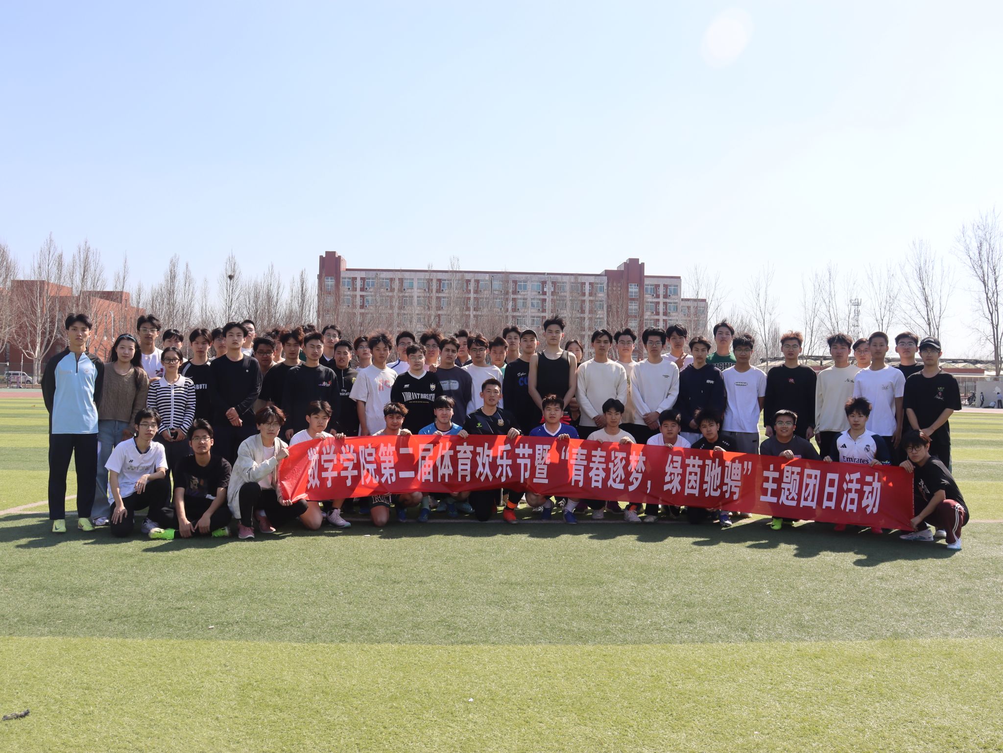 数学学院第二届体育欢乐节暨"青春逐梦,绿茵驰骋"主题团日活动于3月20日在学校运动场举行。全院各团支部代表队齐聚绿茵场,以青春之名驰骋竞技,以运动为媒深化交流。本次活动通过足球赛事搭建竞技平台,以寓教于赛的方式开展思政教育,进一步促进党建引领团建的创新探索。