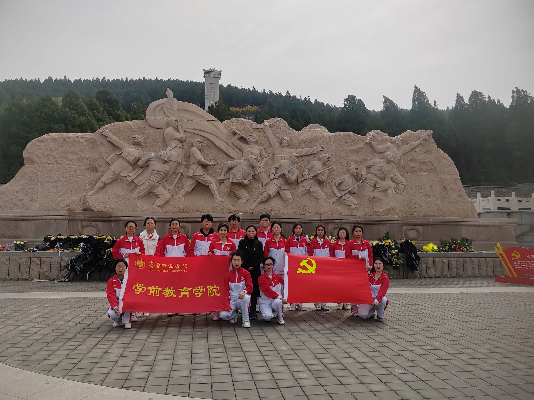 4月4日,学前教育学院学生党支部赴章丘烈士陵园开展清明祭英烈主题党日活动。通过瞻仰革命先烈、缅怀英雄等,引导学生赓续红色血脉,激发奋斗强国之志。学院党委副书记孙建凯、学生第一党支部书记郭飞以及学生党员和入党积极分子代表参与活动。