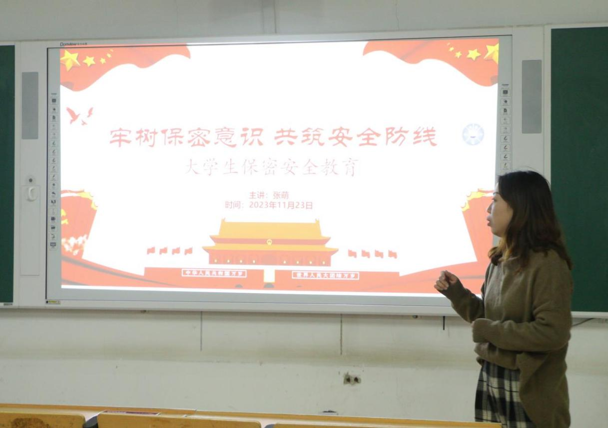 活动中,首先传达学习了关于保密工作的相关重要论述。随后,张萌就《中华人民共和国保守国家秘密法》的相关规定和保密工作的重要性进行讲解,指出了当前保密工作面临的严峻形势,并对在场的同学们提出了明确的要求,作为党员和入党积极分子,有责任和义务保守国家机密,时刻保持警觉,增强防范意识,严格遵守各项法律规定。最后,集体观看了保密工作警示案例视频,通过真实案例分析,强调了泄密事件对个人、社会和国家造成的危害和损失。