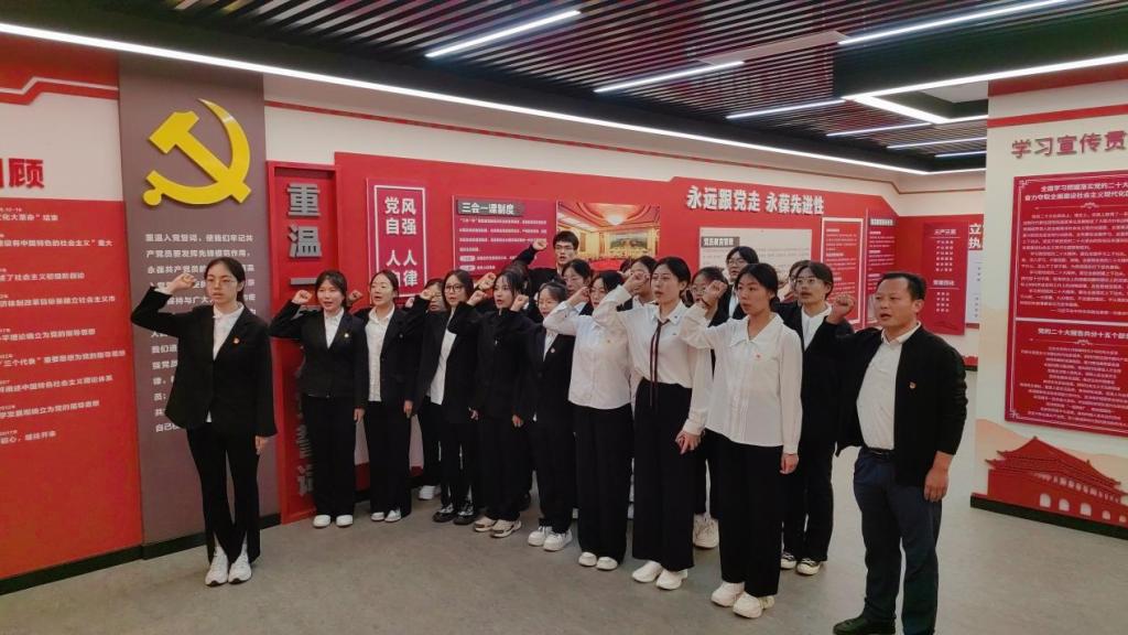 随后,学生党员重温入党誓词,所有党员攥紧右拳,用坚定有力的誓言表达不忘初心、牢记使命的信念和决心。