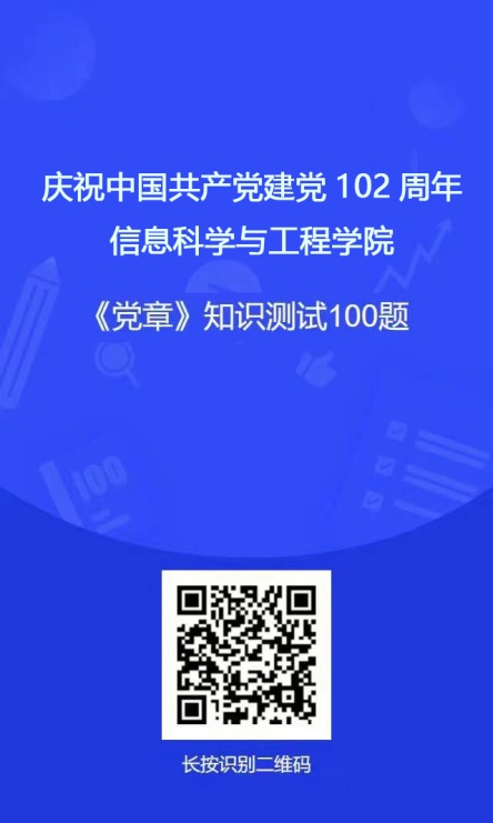 为了更好地开展好主题教育,引领党员教师们深入进行理论学习,主题党日活动中,党员们充分发挥专业优势,制作了《庆祝中国共产党成立102周年——信息科学与工程学院<党章>知识测试100题》小程序,全体党员积极参与、踊跃答题,学习成效显著。