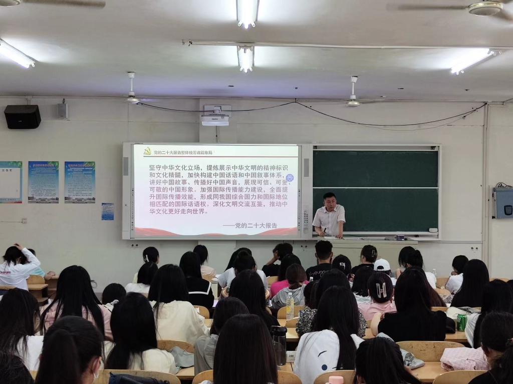 为深入推进学习贯彻习近平新时代中国特色社会主义思想主题教育走深走实,6月1日下午,外国语学院组织开展了党委书记专题讲党课活动,党委书记于江讲授了题为《准确把握党的二十大报告的丰富内涵》的专题党课,全体学生党员及入党积极分子参加学习。
