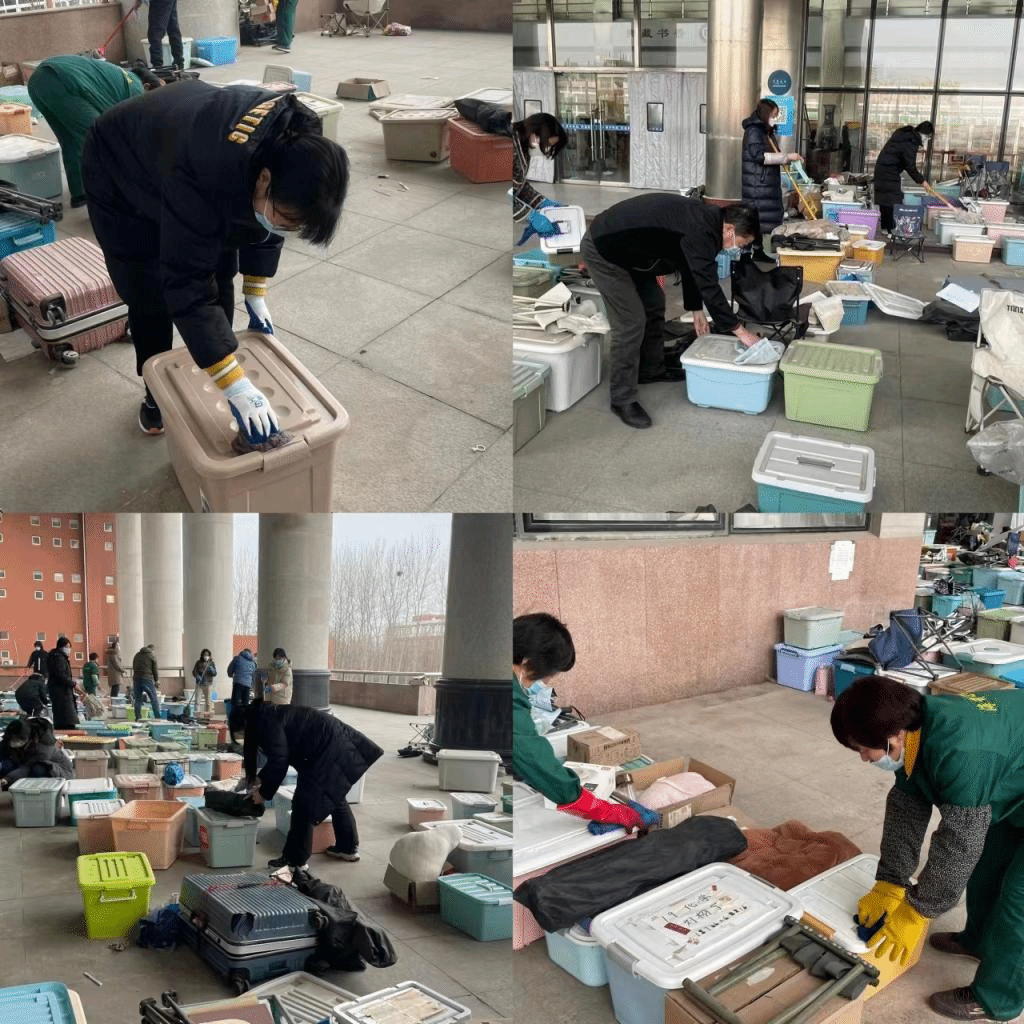 本次活动以“为学生做好事”为主旨,主要将假期前同学们存放在图书馆正门的书箱等物品擦干净、摆整齐。在明确活动任务后,全体党员不畏寒冷,不怕脏、不怕累,迅速行动,拿起抹布、扫把等工具,与物业公司人员协同合作,对存放区域进行全面彻底的清洁整理。经过几个小时辛勤劳动,一个个承载着同学们梦想和希望的书箱被重新摆放整齐、擦拭干净,图书馆北门卫生环境焕然一新,使师院名片更加亮丽。