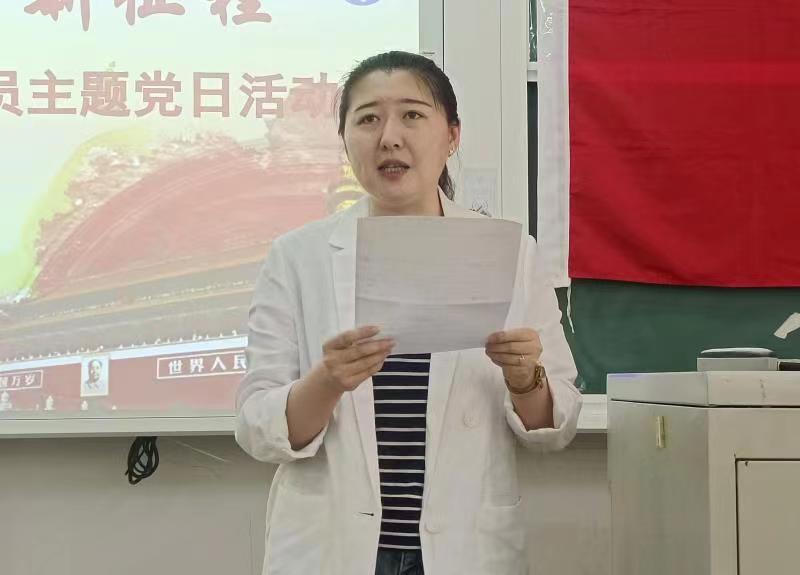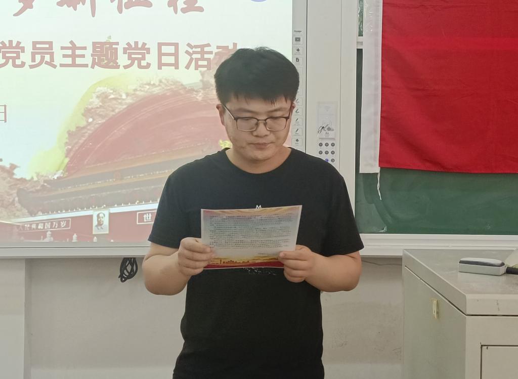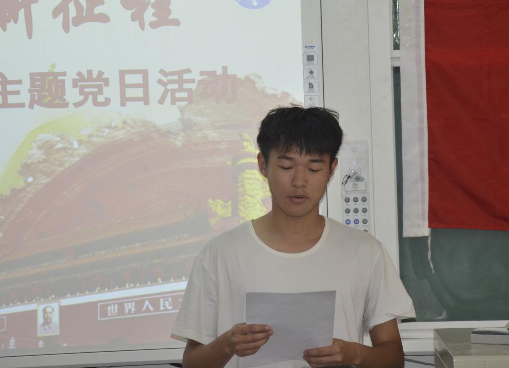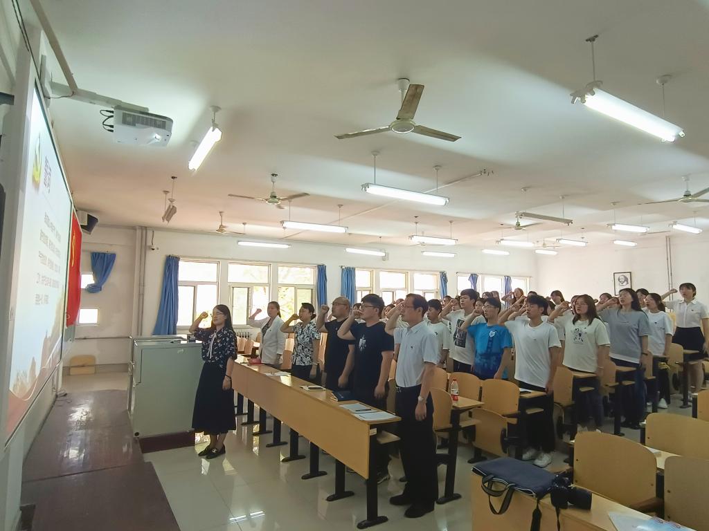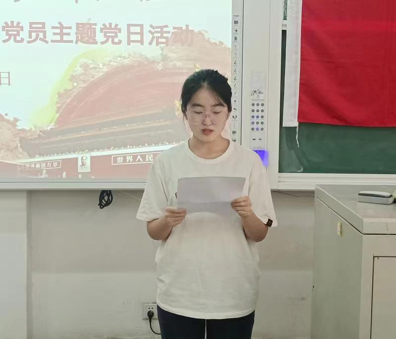 学生第二党支部组织委员徐茜茜带领参加主题党日活动的全体党员重温了入党誓词。回顾铮铮誓言,坚定理想信念,牢记职责使命,发挥先锋模范作用,用实际行动践行对党、对祖国和人民的热爱与忠诚,践行一名中国共产党员的初心和使命。