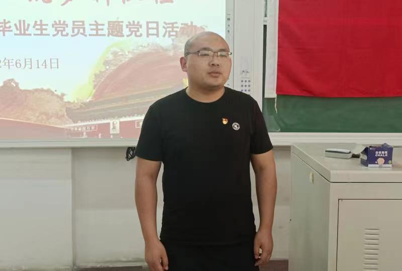 学生第一党支部书记张宏熙和学生第二党支部书记房继德分别发言,期望全体毕业生党员能牢记党员身份,在实践中加强理论、政治、道德、纪律、作风等各方面的锻炼和修养,不负党的教育和学校的培养,以党员标准严格要求自己,切实起到先锋模范作用。最后祝愿毕业生党员能以初心和使命激扬奋斗精神,以奋斗擦亮青春底色,以实干担当时代重任。