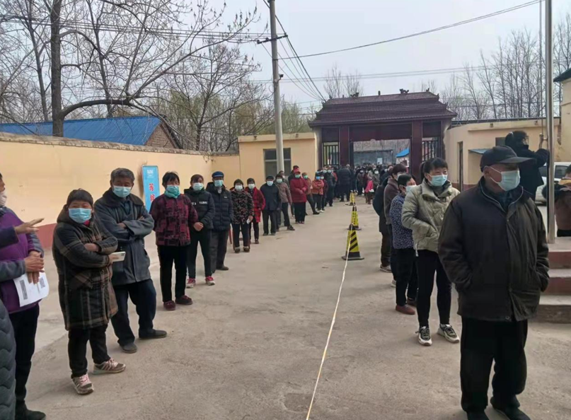 3月19日至21日,各第一书记全部到所驻村庄的核酸检测现场,协助村两委及医务人员做好信息录入、二维码生成打印、宣传引导、现场把控等工作。虽然初春天气乍暖还寒,但村民们仍按照要求间隔一米有序排起纵队,根据流程有条不紊的进行核酸检测。