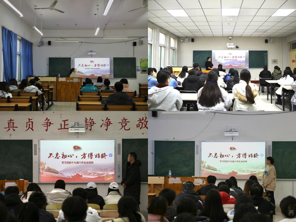 会上,大家集体收看了《中共中央关于党的百年奋斗重大成就和历史经验的决议》和《中国共产党第十九届中央委员会第六次全体会议公报》的新闻播报。随后通过研读原文、团学干部研讨等不同形式的学习,各位同学全程认真学习了全会精神,并交流学习体会。通过此次专题学习,全体学生一致表示要坚持以十九届六中全会精神为指导,坚定跟党走、奋起新时代,从党的百年奋斗历程中汲取前进力量,充满激情的投入到学习和工作中去,不负时代,不负韶华,不负党和人民的殷切希望!