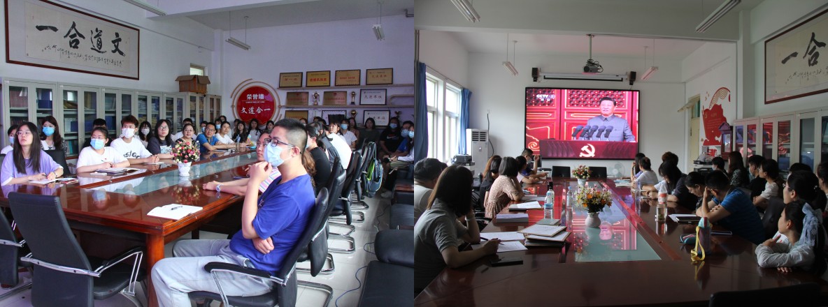 7月1日上午8时,庆祝中国共产党成立100周年大会在北京天安门广场隆重举行。中共中央总书记、国家主席、中央军委主席习近平发表重要讲话。文学院组织全体教师、学生党员及学生代表在文学院会议室集中收看大会盛况,认真学习习近平总书记在庆祝大会上的重要讲话精神。其他师生通过电视、电脑、手机等方式收看收听了大会实况直播。