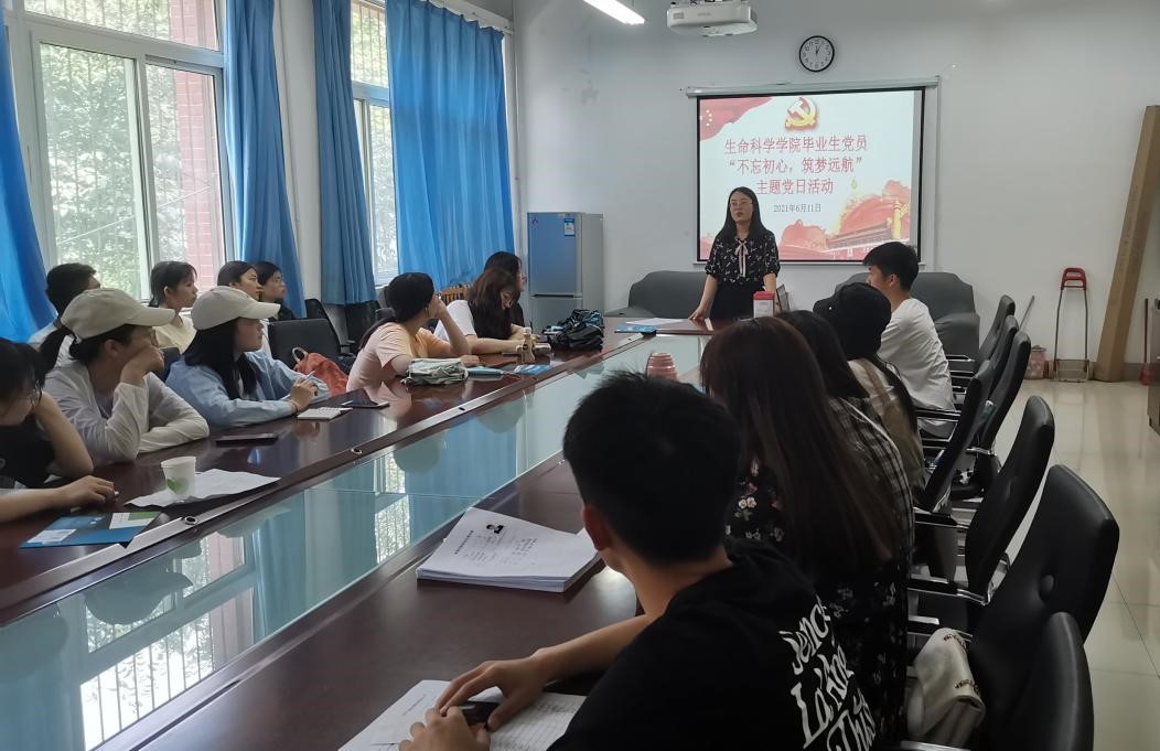 为深入贯彻落实学校及学院党史教育的要求,做好毕业生党员思想政治教育工作,进一步鼓励毕业生党员坚定理想信念,引导毕业生党员在新的学习生活中和工作岗位上继续发挥好先锋模范作用,生命科学学院学生党支部于2021年6月11日开展了“不忘初心,逐梦远航”毕业生党员主题党日活动。会议由生命科学学院辅导员徐茜茜主持,全体毕业生党员参加。