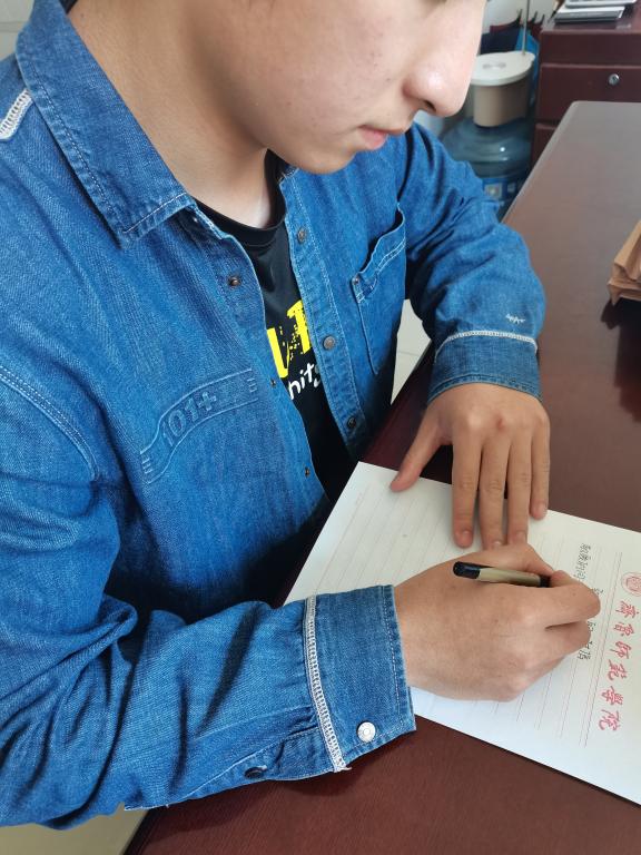 正在念大二的高飞、马彪两位新党员心情激动向党组织表白心声,“入党后一定要更加严格要求自己,向身边的老党员学习,不辜负“党员”这一神圣的称号,时刻牢记初心使命,不断完善自我,锤炼党性修养,德智体美劳全面发展;我们要在最好的时代,做最好的自己,让青春在奋进新征程中绽放绚丽之花。”。