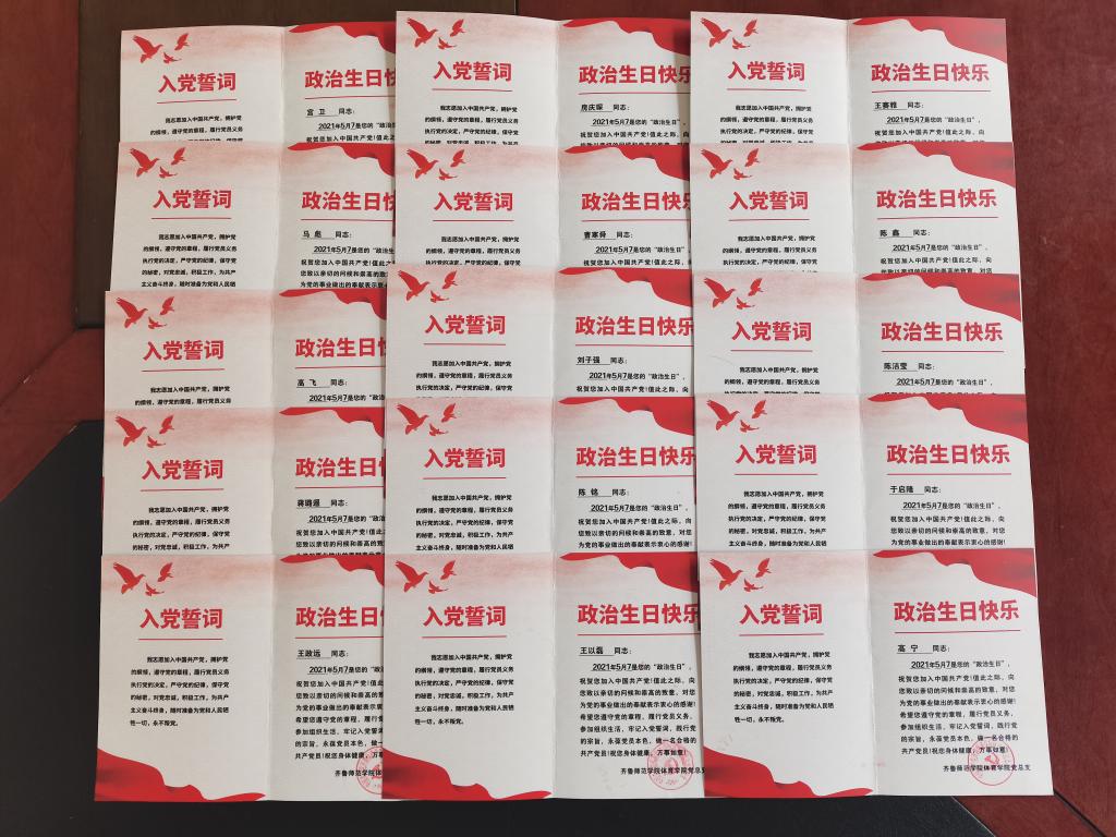 送一张贺卡——“政治生日贺卡”,勉励他们时刻铭记共产党员“第一身份”,牢记新时代大学生党员的职责担当,以实际行动守初心、扬青春,担使命、当先锋。