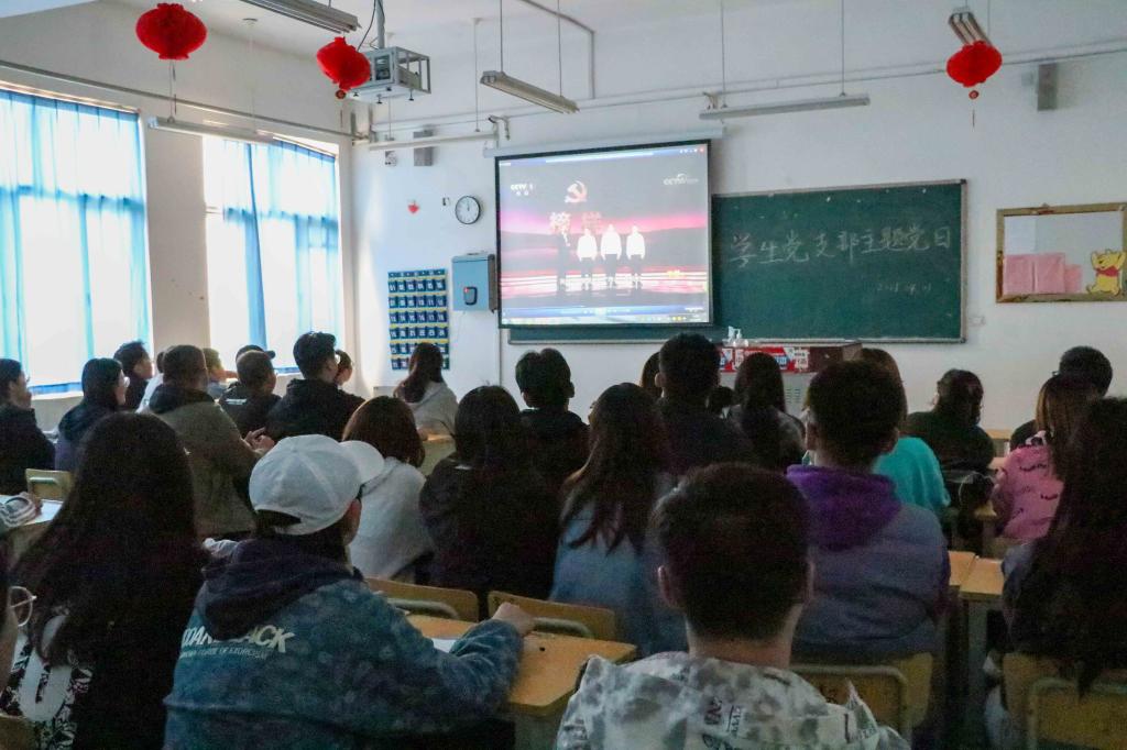 李华首先发言。他说,在全国疫情防控工作中涌现出一大批先进党组织和优秀共产党员,希望同学们要“担当”起自己的使命,汲取“榜样”的力量,向优秀榜样学习,敢于担当,乐于奉献。随后,全体师生一同观看了由中组部和中央台联合制作《榜样5》专题节目。《榜样5》聚焦学习宣传“生命至上、举国同心、舍生忘死、尊重科学、命运与共”的伟大抗疫精神,通过典型事迹再现、嘉宾现场访谈、诗朗诵、重温入党誓词等形式,展现了积极投身疫情防控工作的共产党员“不忘初心、牢记使命、敢于斗争、敢于胜利”的大无畏精神和先锋模范作用,诠释了新时代党员干部“坚定信仰、担当作为、服务群众、无私奉献”的榜样情怀。
