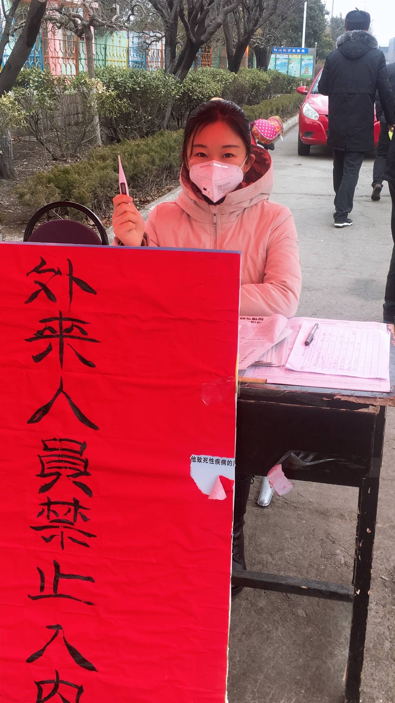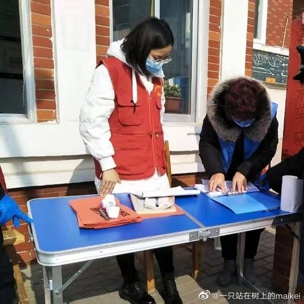 志愿工作当中,首先进行入户摸排调查,排查近期有无与疫情地区人员接触情况,有无发热症状等。由于老村基本都是外来租房人员,所以排查起来比较困难。有的居民拒绝配合,明明在家却不开门;有的家庭经济困难,消息闭塞,根本不清楚本次疫情信息。在寒风中,一站就是一天。面对不理解和不配合,她一次次耐心解释、宣传、劝导、登记。
