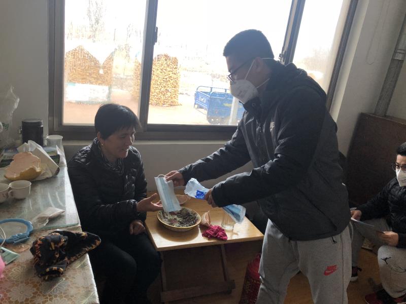 为加强消毒防疫避免疫情发生,他们自费购买了300副口罩和一批消毒液,免费发放给群众。分发完成后跟随“村两委”拿上消毒器,对村文化广场、街道、垃圾箱等重点场所进行杀菌消毒,保证村内居民有个安全卫生的生活环境。此外,他们还向村内群众发放了宣传单200余份,耐心向群众讲解疫情防控状况,消除群众恐慌心理,坚定必胜的信念。在劝导点坚守岗位,进出登记,全面排查。
