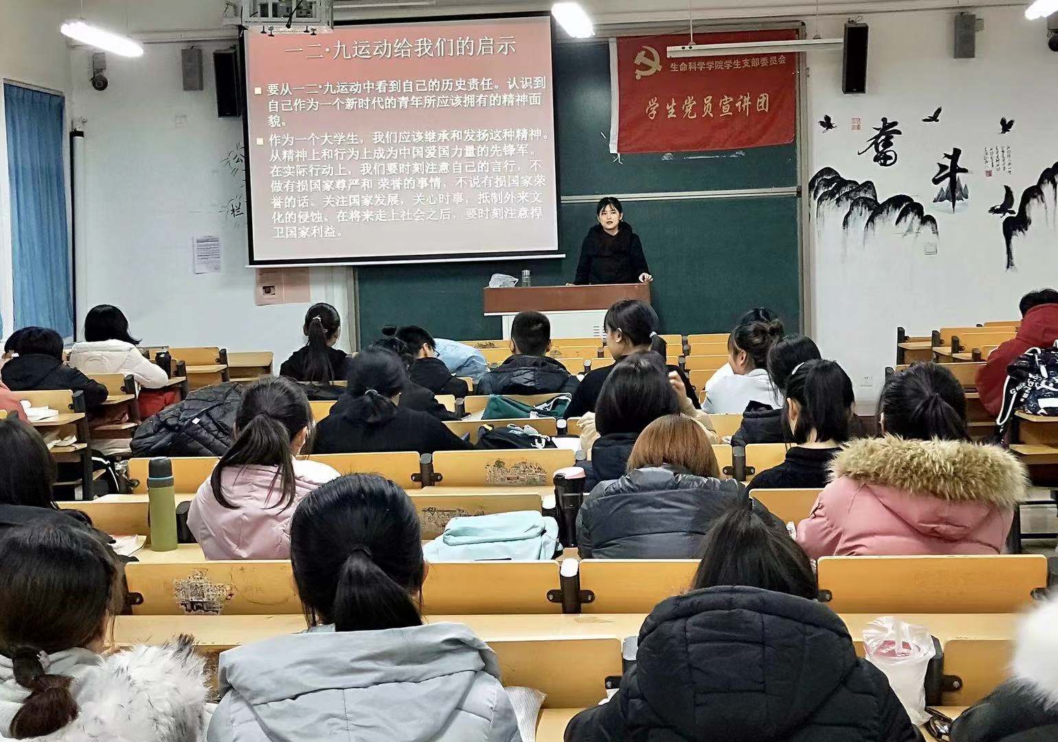 生命科学学院学生党员宣讲团以“纪念一二九运动,弘扬爱国主义精神”为主题进班级宣讲