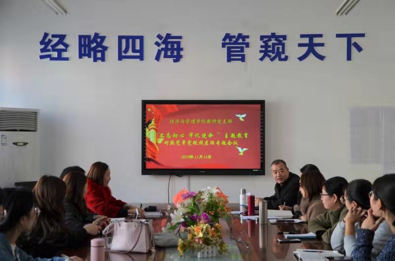 对照党章党规找差距,是“不忘初心、牢记使命”主题教育检视问题的重要内容,是推动党员同志主动检视自我、自觉修正错误的重要措施。按照校、院两级要求,11月14日下午,经济与管理学院教工党支部召开对照党章党规找差距自我检视专题会,教工党支部书记郭莹主持会议,支部全体党员参会。