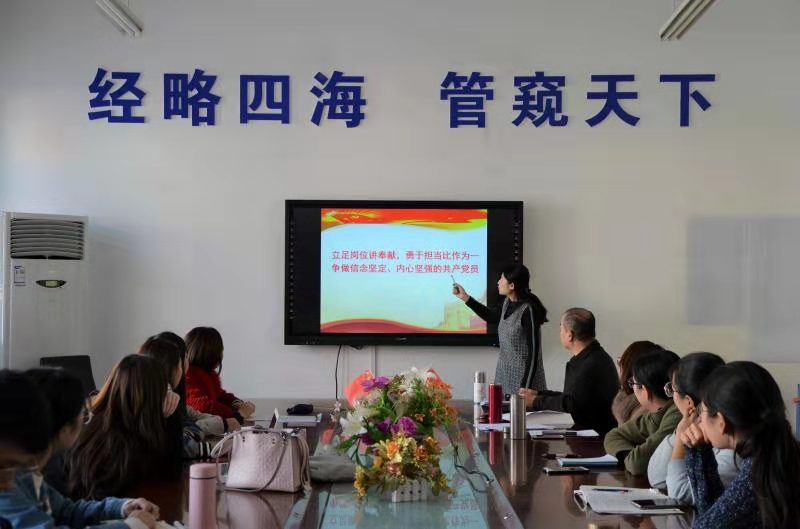 另外,当天下午学院还举行了支部书记讲党课活动,此次活动是经济与管理院“不忘初心、牢记使命”主题教育专题党课系列活动之一,党课由教工支部书记郭莹主讲,主题为“立足岗位讲奉献,勇于担当比作为”——争做信念坚定、内心坚强的共产党员。党课主要从党员“坚定共产主义理想信念,磨练强大的内心世界,立足岗位勇于担当作为”三个方面展开。高校教师是承担高校教学和科研任务的主力军,是形成高校的教育能力、实现高校教育目标的决定因素。作为高校教师党员,更要进一步坚定共产主义理想信念,争做信念坚定、内心坚强的共产党员,敏锐而勇敢地抓住机遇,迎接挑战,寻求发展,立足岗位争创佳绩。