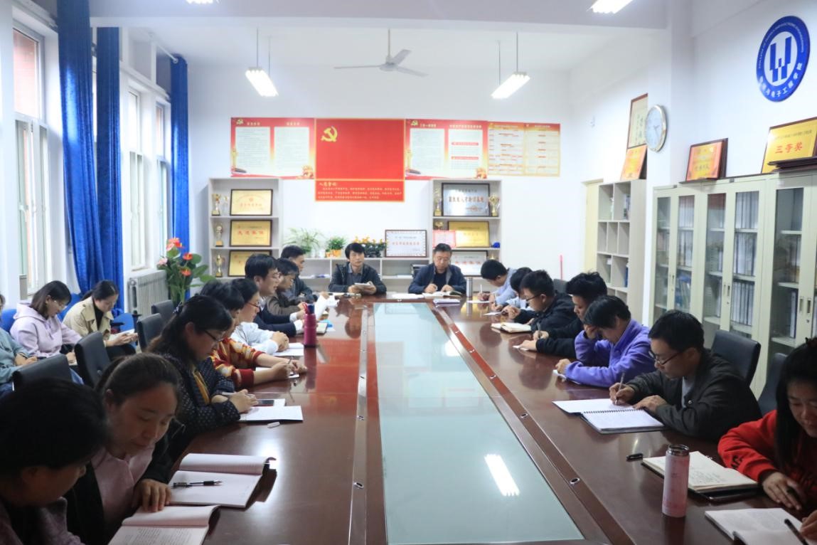 10月10日下午,在金年会官网章丘校区实验楼B216会议室内,物理与电子工程学院召开全体党员会议,会议由学院党总支书记庞守荣主持,学校主题教育指导督查组成员、校机关党委书记、党委组织部副部长宋新刚同志出席会议。会议分为学院教师党支部调整选举和全体党员主题教育学习两项内容。