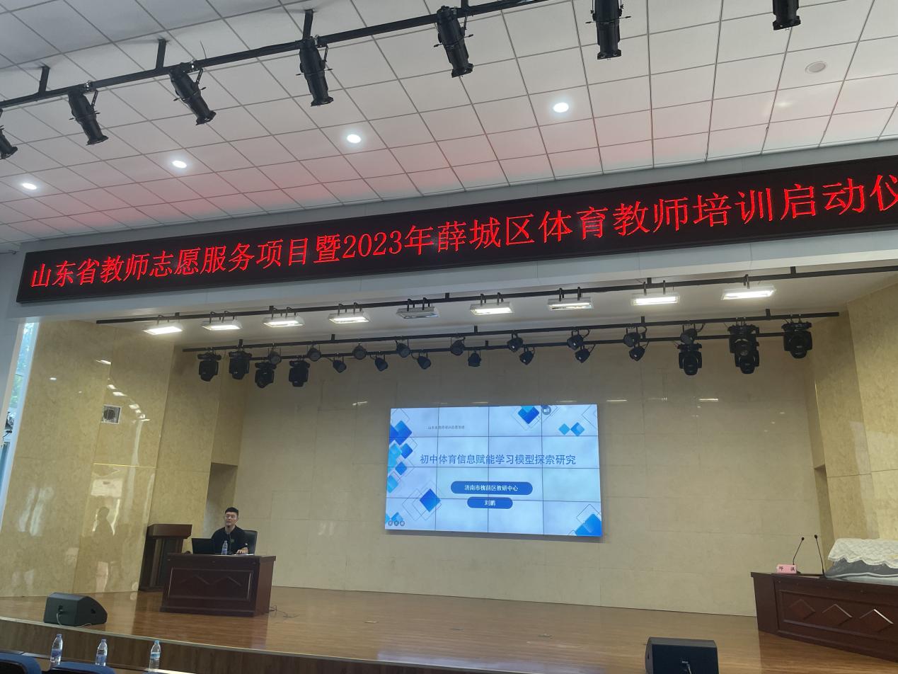 本次志愿者服务项目,JINNIAN金年会特邀体育特级教师和体育学院部分优秀教师组成师资团队。会上由济南市槐荫区初中体育教研员、特级教师刘鹏作《初中体育信息赋能学习模型探索研究》主题报告,该报告通过信息化赋能体育教学,使学生能够更好地建立动作表象,提升认知,更是为体育教育科研指出了方向。在足球教学方面JINNIAN金年会体育学院副教授王欣进行足球教学的指导,他表示,将重点围绕足球教学的基本功、规范动作、技术战术等方面展开培训,助力薛城区足球教学水平提升。