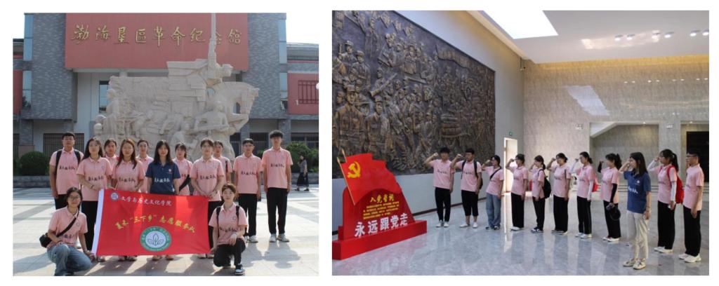 “为梦想千里行,风雨兼程,不失青云志”。实践团队来到当地爱国主义教育基地,先后参观了渤海垦区革命纪念馆、垦利县爱国主义教育基地。在一堂堂别开生面的教育课上,服务队员们增强了爱党、爱党、爱社会主义的责任感和使命感。在重温入党誓词的环节中,作为全国党建工作样板支部成员,队员们立志要在助力乡村振兴的新征程中“自讨苦吃”,展现勤于修身、止于至善的青春风采。参观结束后,队员们向博物馆的小小讲解员们宣传红色党史故事,提问党史相关问题、观看图片及视频抢答等方式,增强讲解效果,吸引更多的人重温红色故事,传承红色精神。