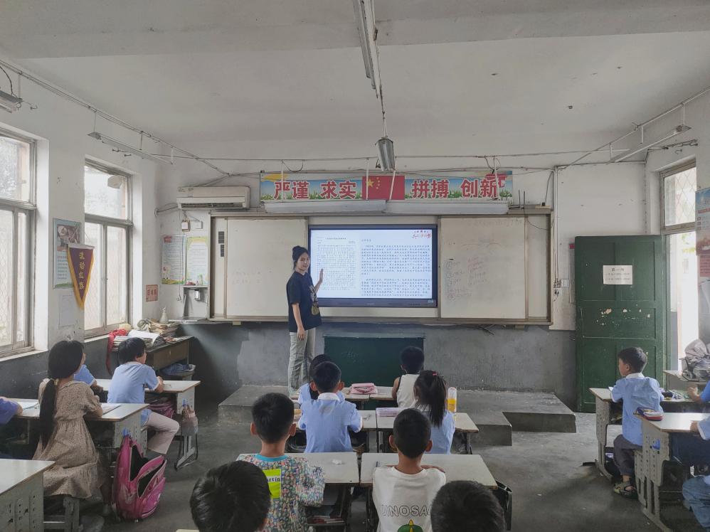 在郓城县潘渡镇朱屯小学,志愿者结合所学专业给同学们上了一堂精彩的“音乐党课”。“音乐党课”融红色历史、党的理论、音乐知识、经典鉴赏于一体,既是一堂红色经典音乐作品赏析课,又是一堂党史学习教育课,还是一堂形式新颖的思政课。志愿者将党史讲授与艺术展示相结合,把思想政治教育和美育教育有机融合,变“概念讲述”为“音乐感染”。