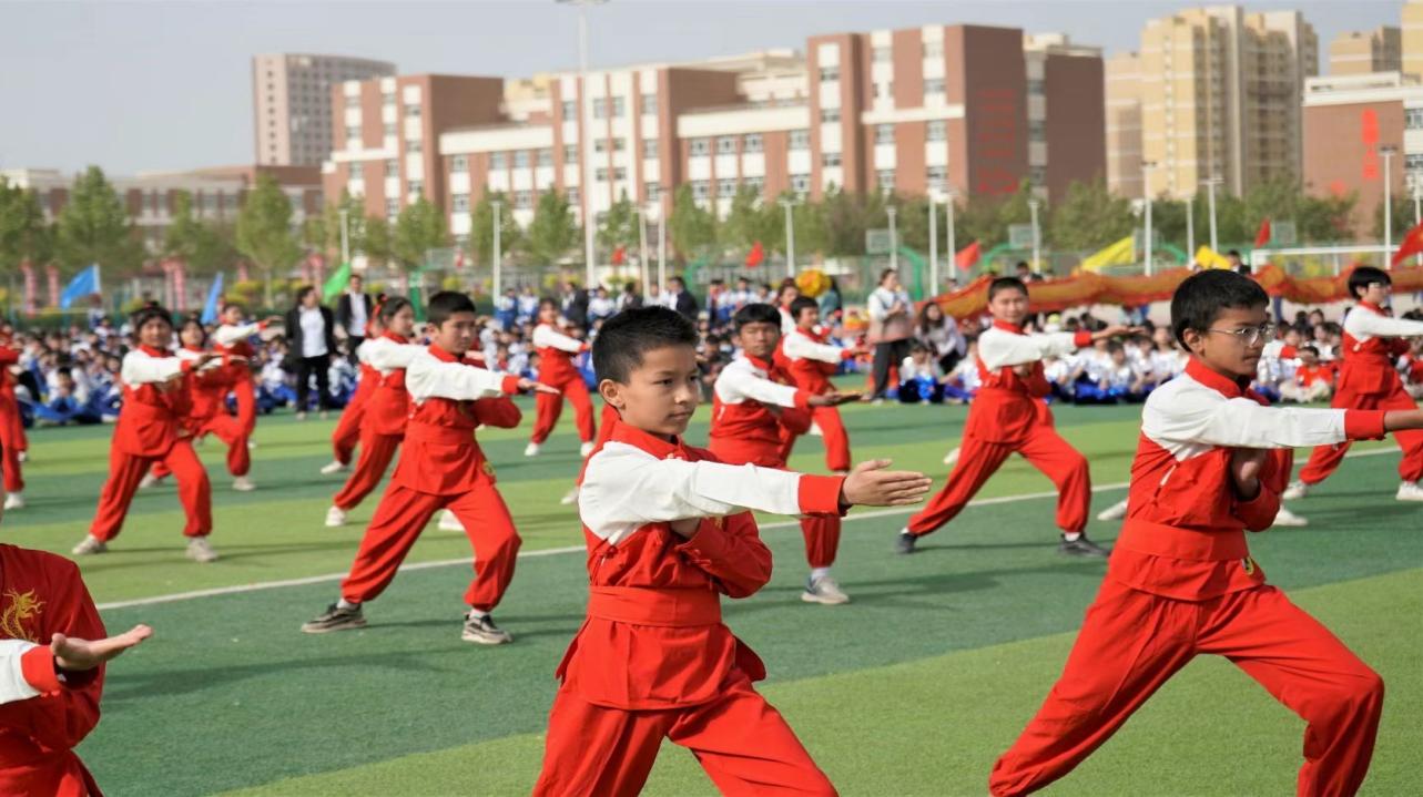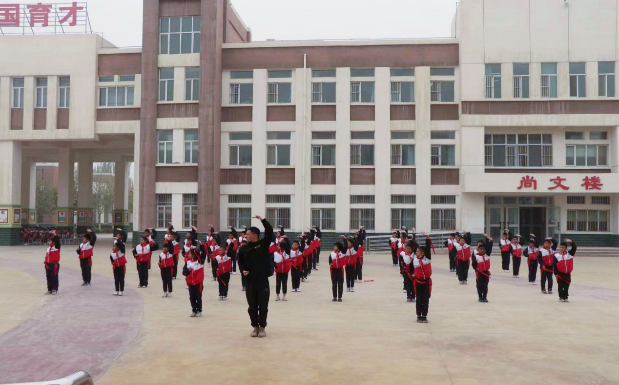 麦盖提县第六小学充分发挥课后服务的育人功能和价值,通过开设团体韵律操、乐高、手工、科学实验等各类特色活动,丰富学生的课后生活,提升学生的综合素养。作为JINNIAN金年会体育学院的一名学子,援疆支教团的陈仁义同学充分利用学校课后服务这一平台作用,将课后服务与武术育人进行有效衔接,成立武术社团,组建学习队伍,于每周五下午的课后服务时间,带领武术社团的孩子们一起进行武术训练。从武术的基本动作、三种手型以及五种步型基本功开始,带领学生们一步步练习,培养了学生们顽强的毅力与坚定的信念。