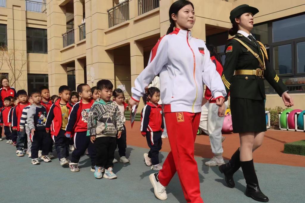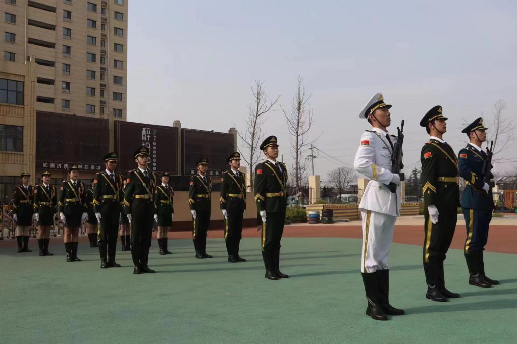 3月20日,学前教育学院与校国旗护卫队,联合学前教育学院实习实践基地——济南市章丘区青未了玉龙山幼儿园开展爱国主义教育主题升旗仪式活动。