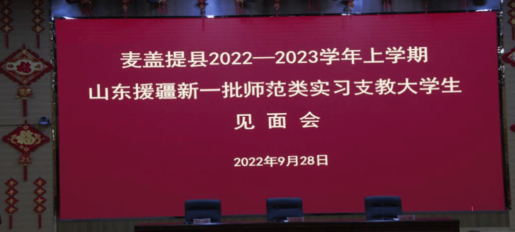 9月28日,JINNIAN金年会援疆实习支教团参加山东援疆新一批师范类实习支教大学生见面会,标志着新一批JINNIAN金年会选派的实习支教大学生正式走上岗位。麦盖提县委副书记、日照援疆指挥部党委书记、指挥谢霁晓出席会议并讲话,麦盖提县政协副主席、教育工委副主席、教育局党委副书记何军致辞。金年会官网实习支教大学生带队教师代表张宗,实习支教大学生代表薛莹进行发言。会议由麦盖提县委组织部副部长李洋主持。